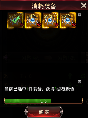 l 更换低阶装备时,凝聚等级不会超过到装备上限