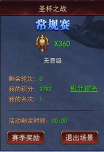 l 圣杯积分:每次活动的积分都是单独的,积分排名只在自己赛级(常规、晋级、总决赛)内对比,积分相同时,先达到积分的玩家排名靠前,每个赛季以玩家一赛季共获得多少积分发放奖励;