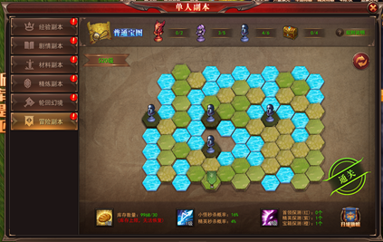 冒险图有三个等级对应三种难度的地图,对应的奖励也不同;